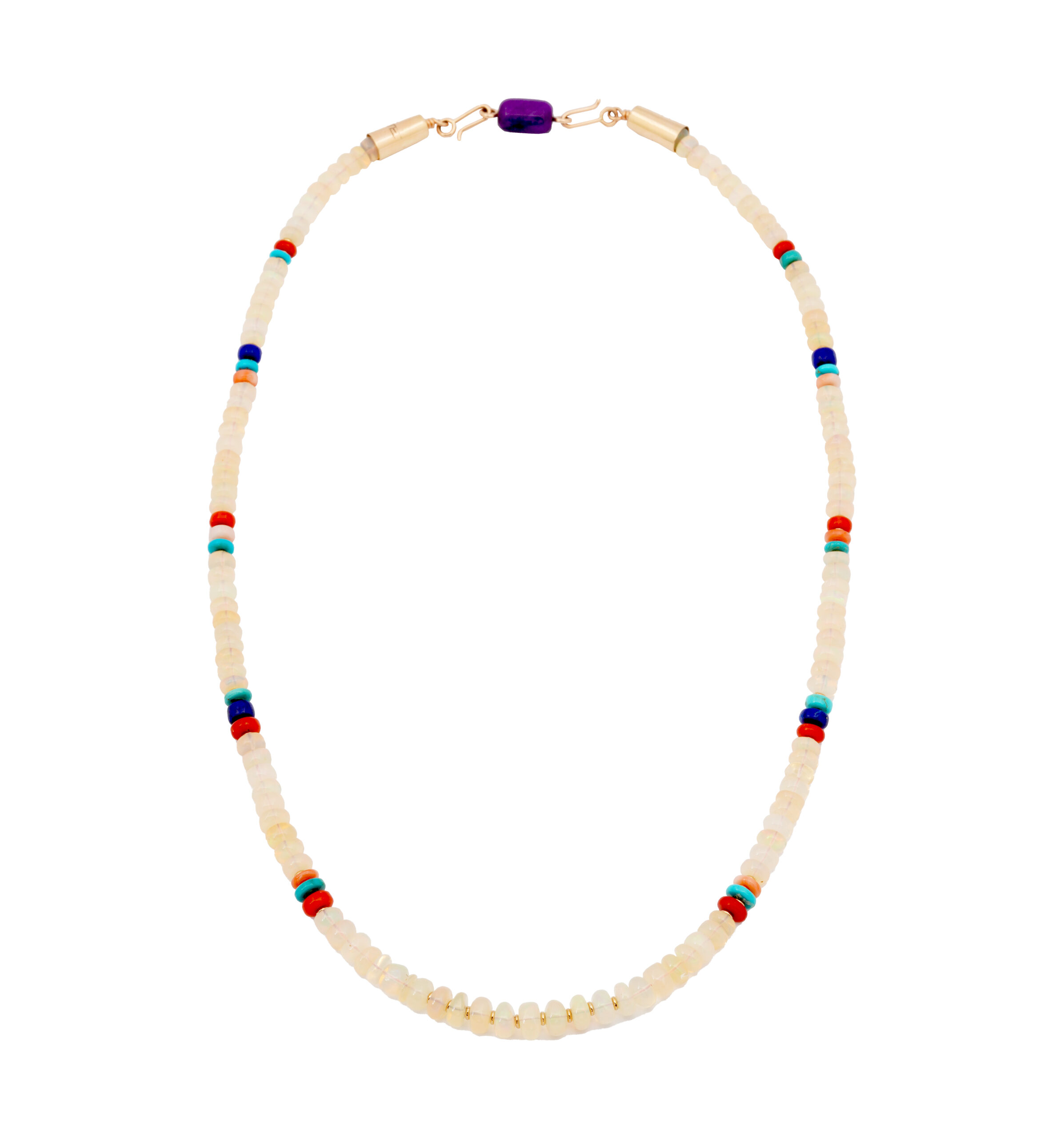 Many of his pieces are tufa-cast and finished with meticulously hand-cut inlay—turquoise, lapis lazuli, coral, jet, and sugilite—arranged in patterns that evoke celestial or spiritual motifs. Gold accents are often incorporated as focal points, adding contrast and dimension while reinforcing themes of harmony and direction.