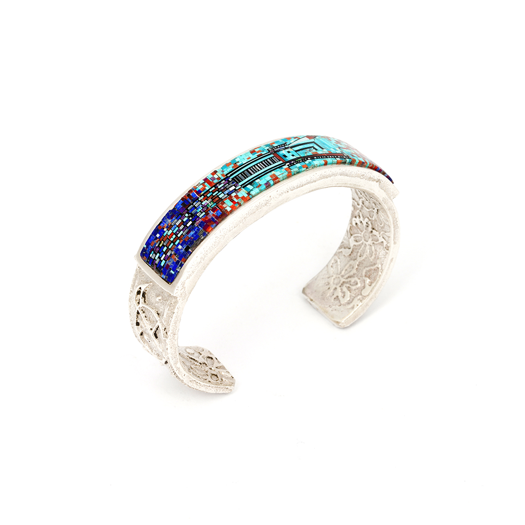 The Clarks’ micro-fine inlay often incorporates geometric patterns, nature-inspired motifs, and traditional Navajo symbols, all of which are rendered with extraordinary skill and care. This technique elevates their jewelry, blending modern aesthetics with the cultural significance of their heritage. Their work pushes the boundaries of traditional Navajo inlaid jewelry, achieving a level of sophistication that has earned them a prominent place in the Native American art community.