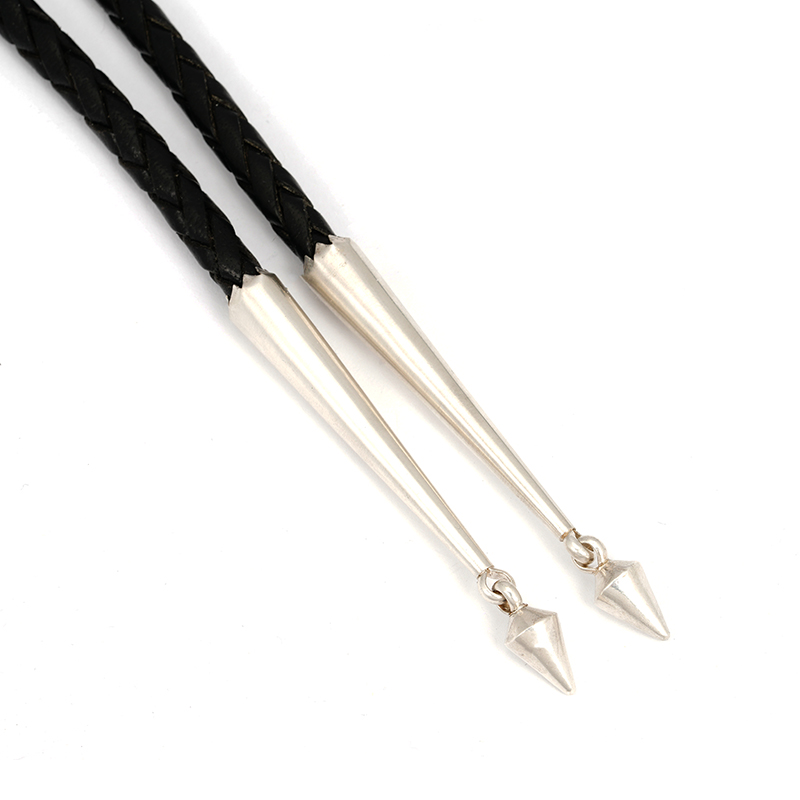 Silver Inlaid Bolo: 2″ 1/8th L X 1″ 5/8th W taper to 7/8th