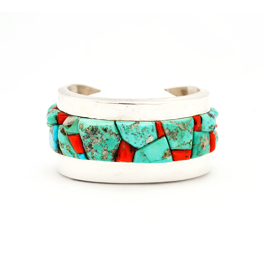 Under Loloma’s mentorship, Eveli flourished. She quickly developed a distinct voice of her own—deeply intuitive, spiritually charged, and visually poetic. While her early works reflect Loloma’s influence in technique and form, Eveli’s jewelry expresses a more organic, mystical narrative. Her use of turquoise, lapis, coral, shell, gold, and exotic woods is guided by emotion and symbolism rather than symmetry or repetition, resulting in pieces that feel ancient, yet timeless.