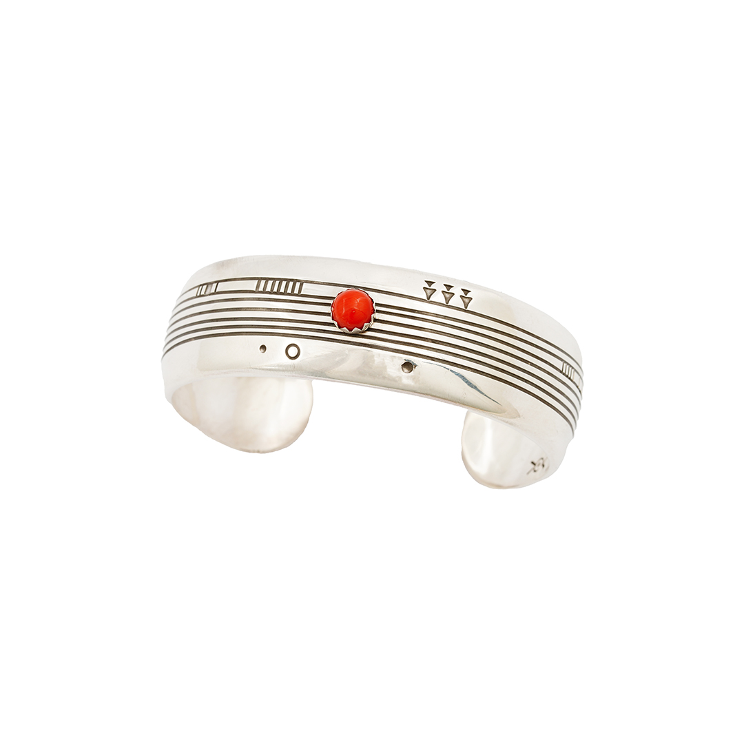 Norbert Peshlakai Sterling Silver Bracelet With Coral