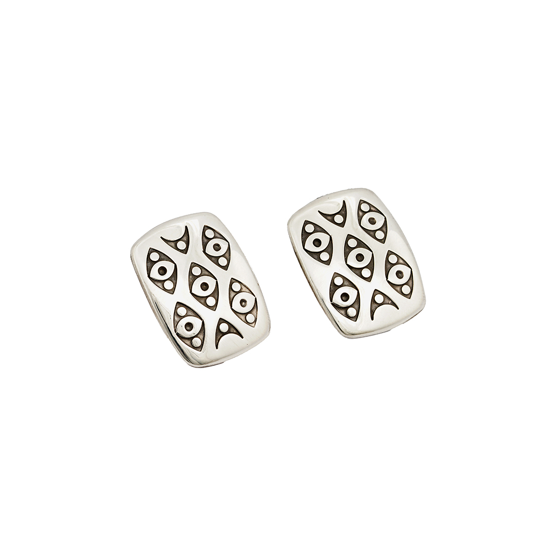 Norbert Peshlakai sterling silver hand-stamped post earrings.