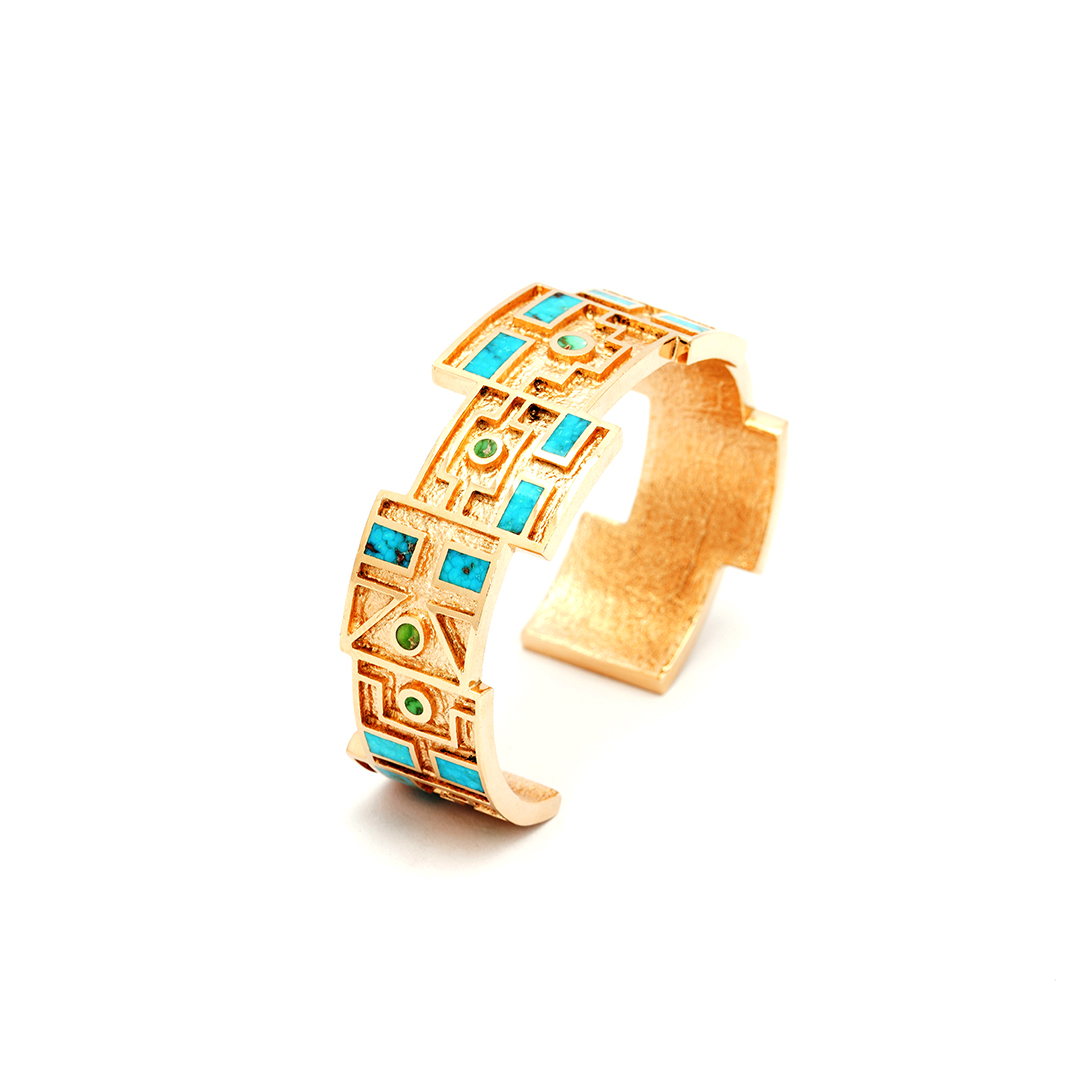 Ric Charlie is the most innovative jeweler of our time, utilizing the ancient technique of Tufa Casting. Ric creates multi-level dimensional jewelry by meticulously cutting the designs with flawless precision. Each design is hand cast, formed, filed, sanded, and polished to perfection. Finally, diamonds and semi-precious gemstones are set to accent each piece for sale to the discriminating collector.