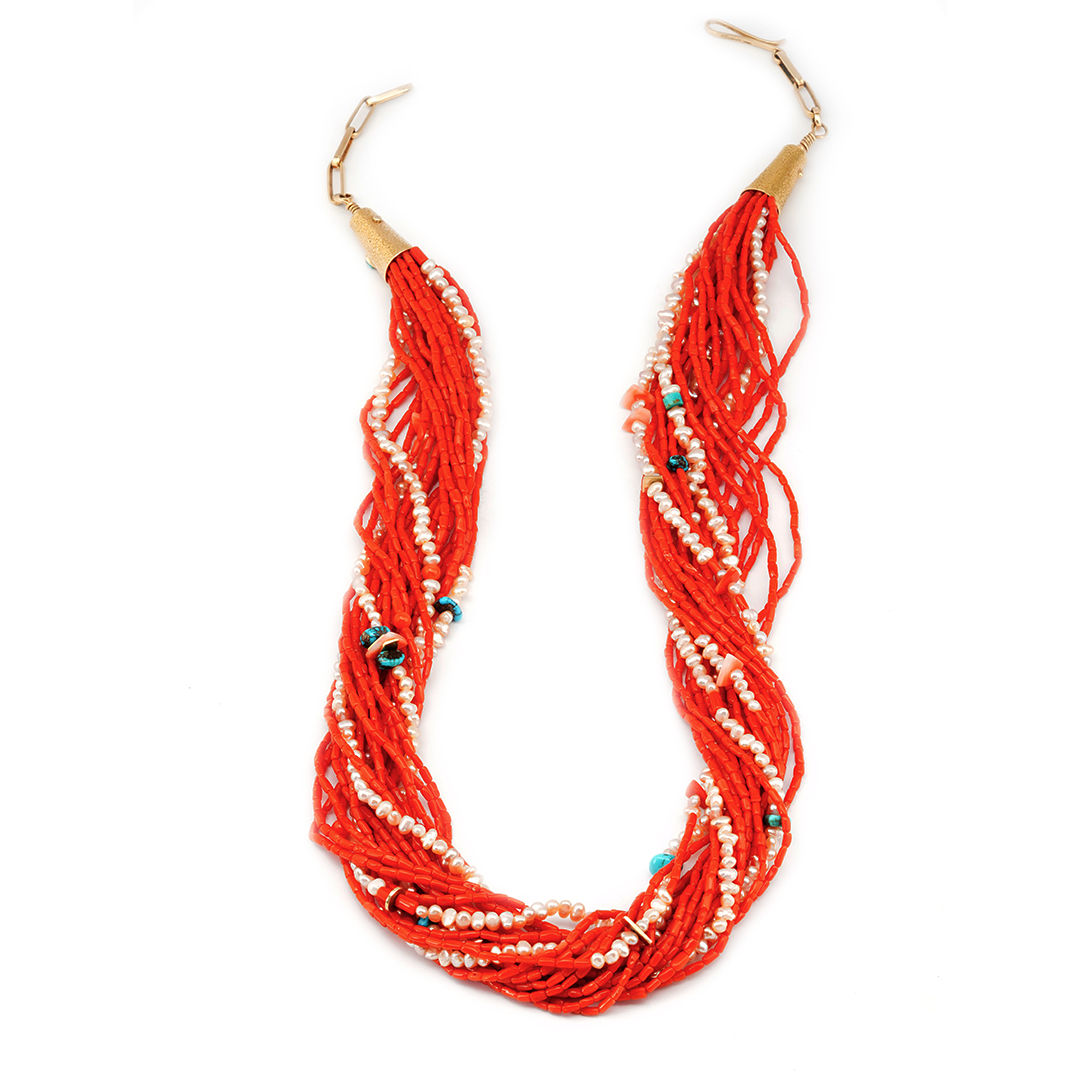 Sonwai (Verma Nequatewa) Coral Strand Gold Necklace