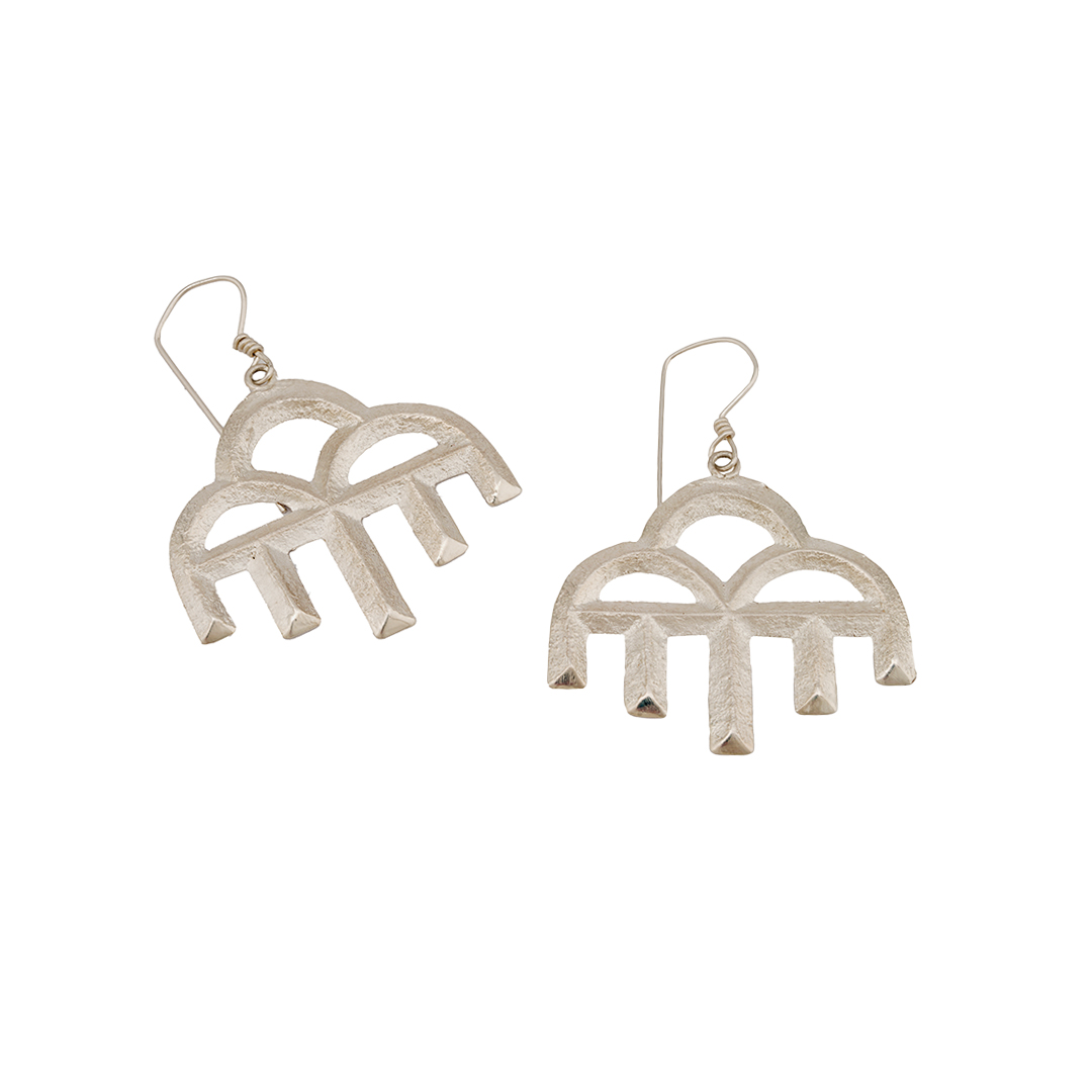 Tim Herrera sterling silver tufa cast pueblo cloud with rain design earrings.
