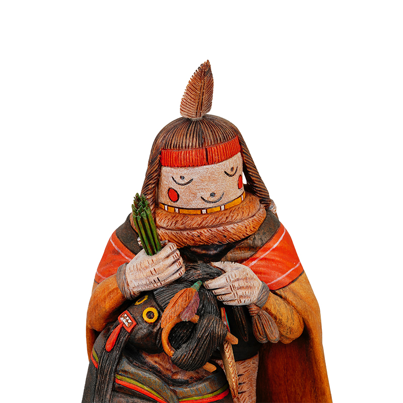 Ivan Wytewa is a Hopi artist from the village of Bacavi, known for his katsina doll carvings and mixed media paintings. Traditional Hopi carving practices deeply influenced a nephew and student of renowned carver Tom Holmes, Wytewa. He has also collaborated with fellow artist Ronald Honyouti, assisting with figure-shaping while Honyouti completed detailed surface work. In addition to carving, Wytewa has explored painting, often focusing on vibrant depictions of Hopi katsina. His work reflects a strong commitment to Hopi cultural continuity, blending traditional forms with contemporary expression.