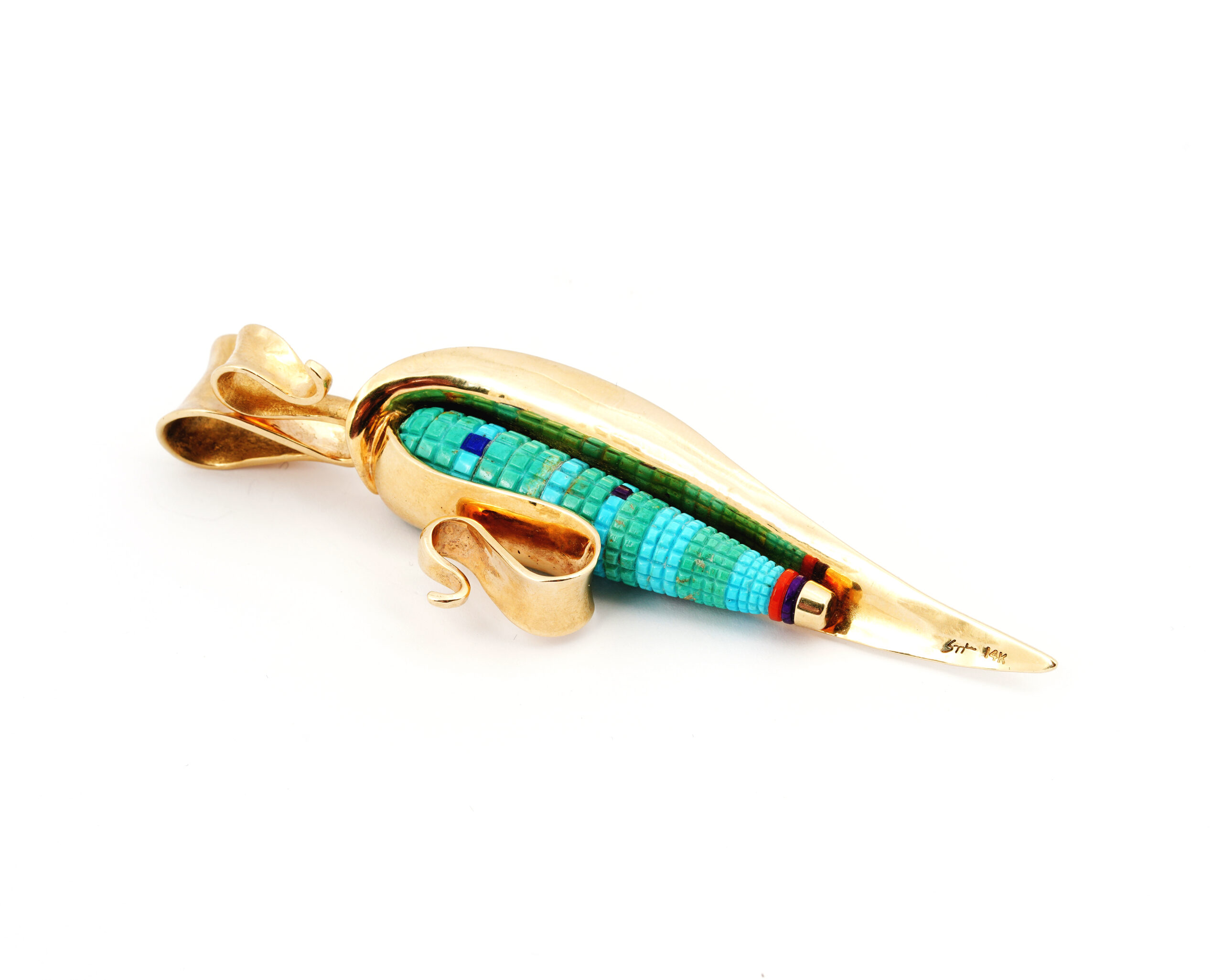 Don Supplee 14K Inlaid Hopi Corn Pendant.